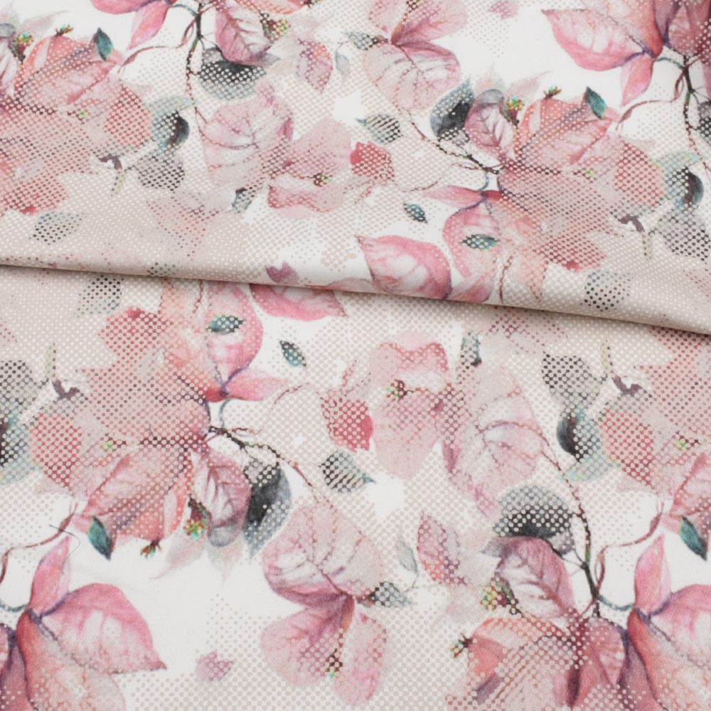 Коттон стрейч APANAGE белый, розовые листья, бежевые точки, ш.128 купить в розницу и оптом