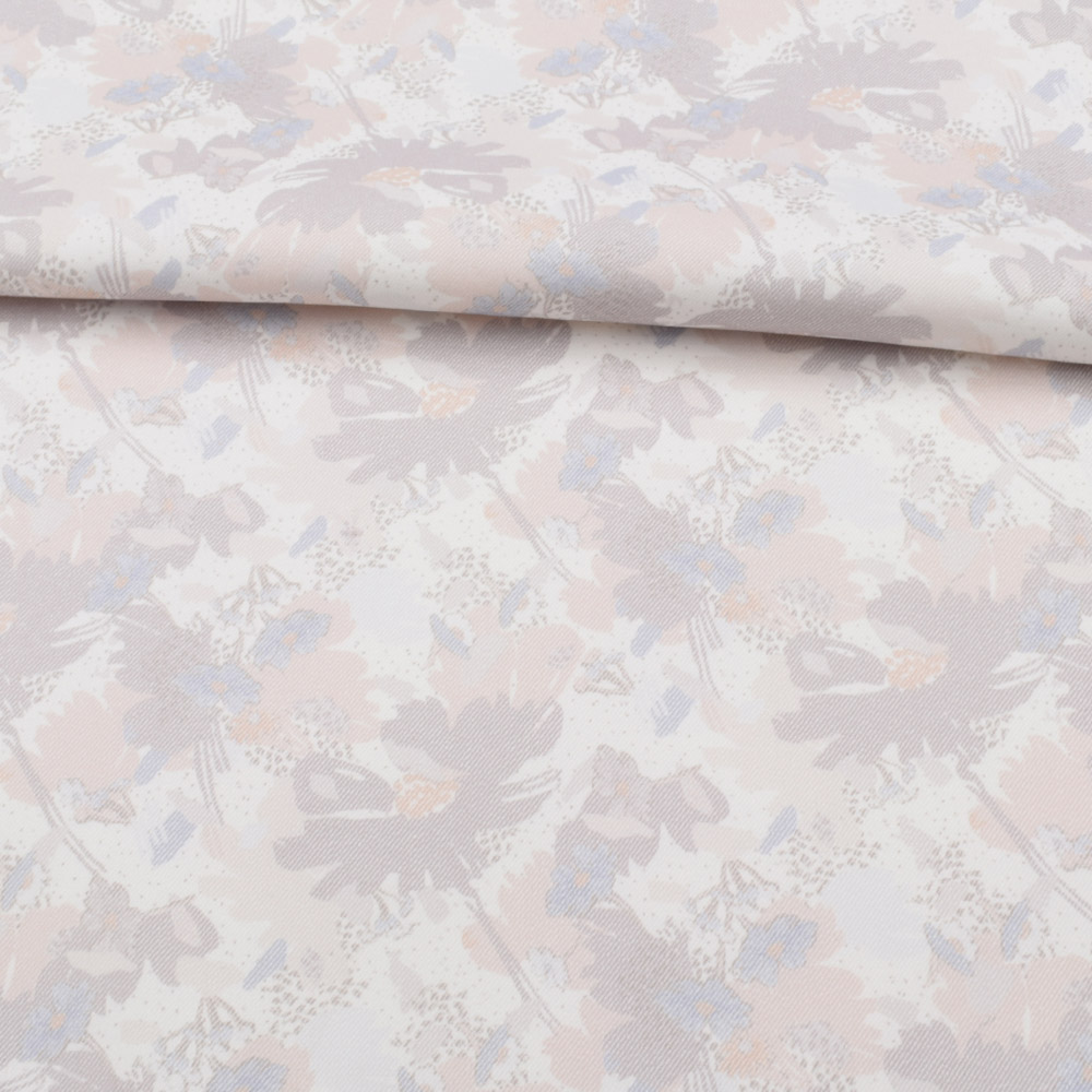 Коттон стрейч белый, бежево-серые цветы, ш.138 купить в розницу и оптом
