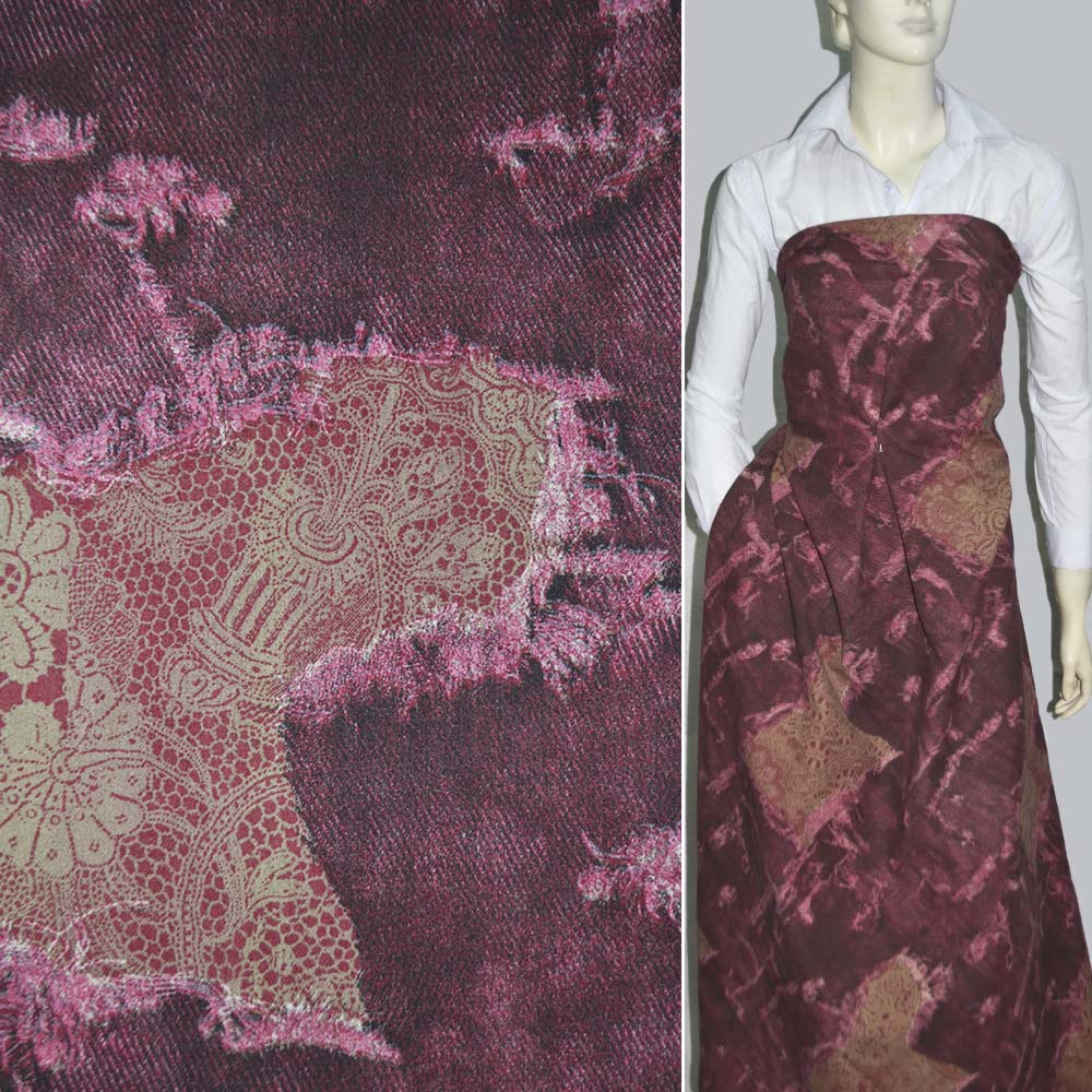 Коттон стрейч бордово-бежевый с абстрактным рисунком ш.127 купить в розницу и оптом