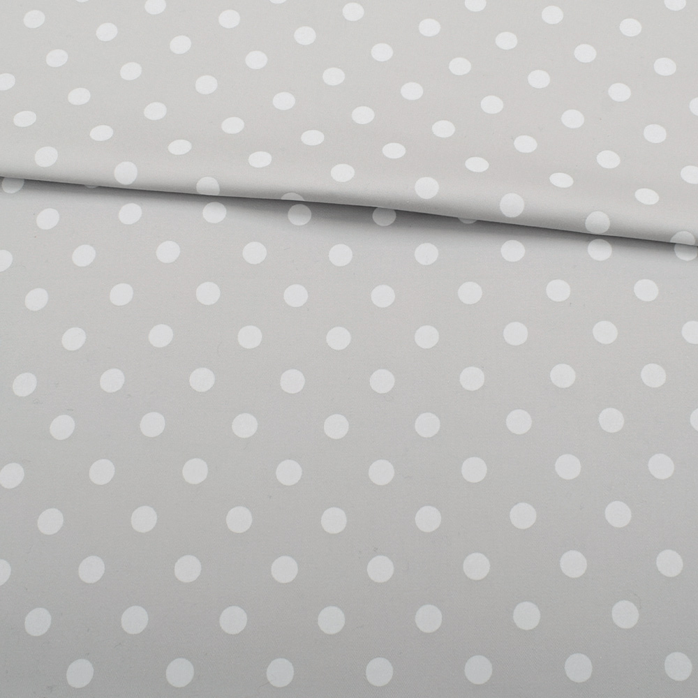 Коттон стрейч серый в белый горох ш.140 купить в розницу и оптом