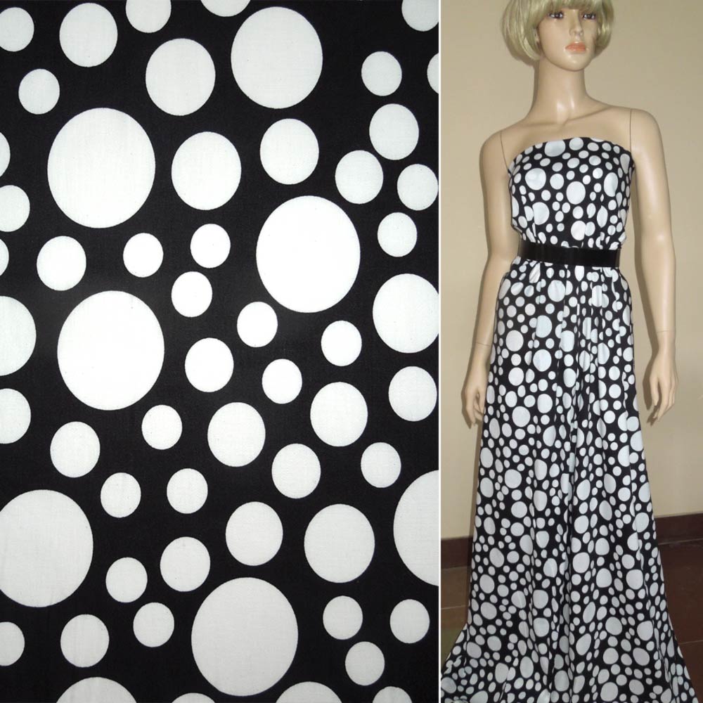 Коттон стрейч черный с белыми большими кругами ш.130 купить в розницу и оптом
