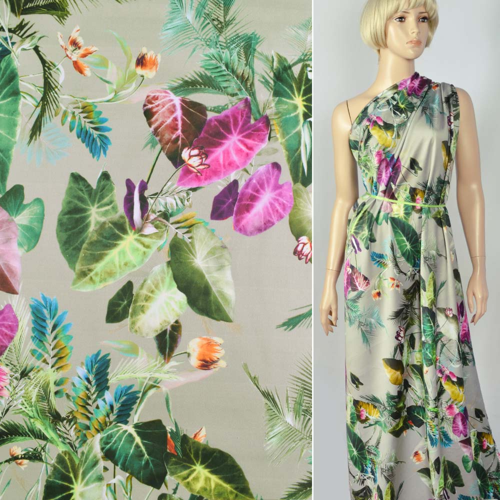 Коттон сатин оливковый в зелено-розовые листья и цветы ш.141. Состав ткани: Хлопок-100. Плотность ткани: 85 г/м.кв. Страна производитель: Германия. Материал очень легкий, дышащий, не дающий телу потеть или мерзнуть. Именно благодаря высоким гигиеническим свойствам пользуется большой популярностью. Коттон не прихотливый в уходе, мягкий и гипоаллергенный. Благодаря плотности подходит для пошива летних костюмов, платье, брюк и юбок. Хлопок не электризуется, не скрипит, в отличии от синтетических тканей. Используется для пошива одежды, постельного и нижнего белья.