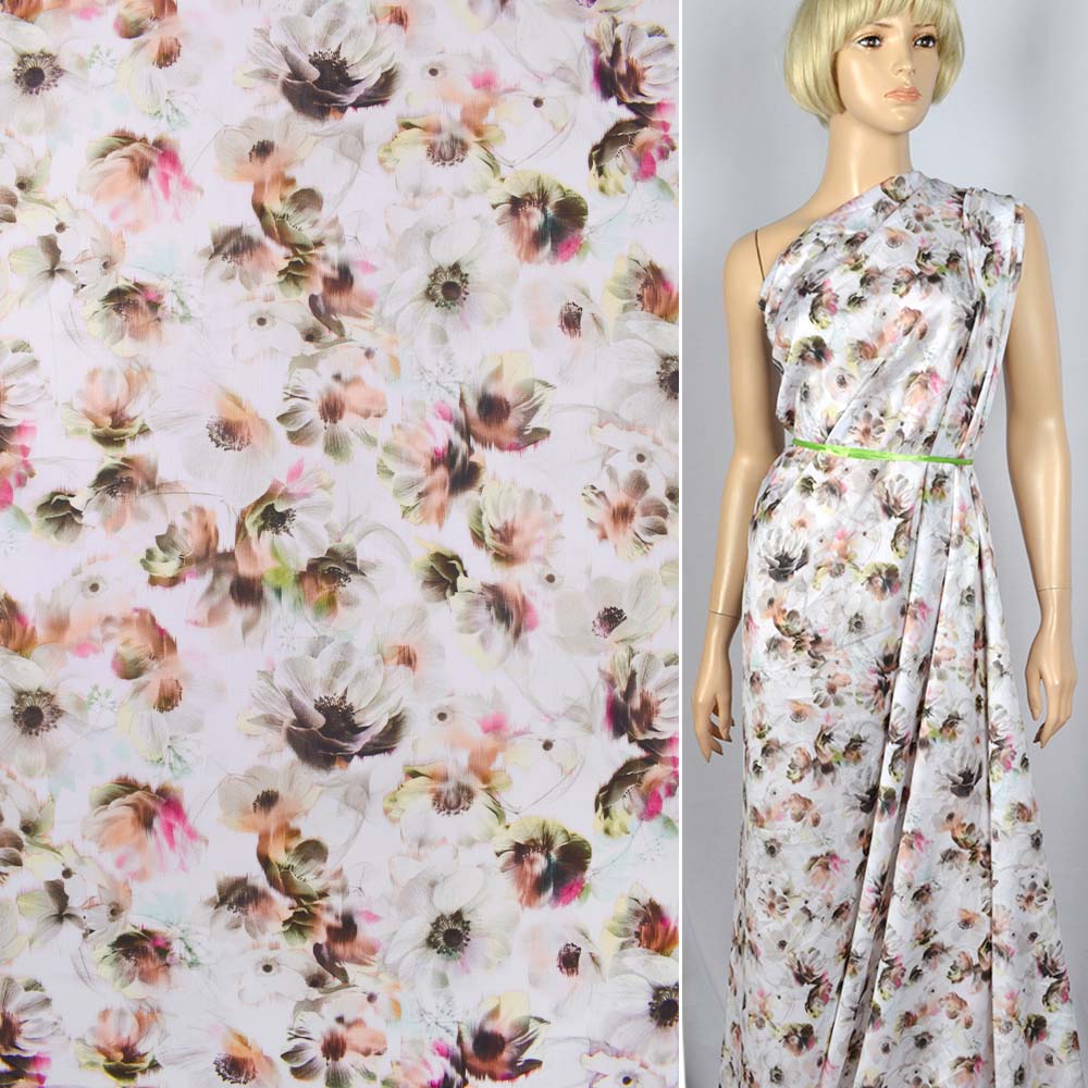 Коттон-сатин "Apanage"белый в персиково-зелено-розовые цветы ш.143 купить в розницу и оптом