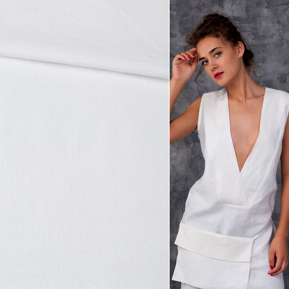 Лен белый ш.140. Состав ткани: Лён-70, Хлопок-30. Плотность ткани: 170 г/м.кв. Страна производитель: Южная Корея. Лен - материал средней плотности, натурального происхождения, используется для пошива летних изделий. Гигроскопичный, воздухопроницаемый, прочный, устойчив к носке, стирке и глаженью. Поверхность ткани матовая, а благодаря хлопку в составе, тактильно очень мягкая и приятная на ощупь, непрозрачна. В складках и сборках не имеет значительного формообразования, ложится мягко и пластично. Подходит для пошива брючных костюмов свободного кроя, пиджаков, платьев, юбок, сарафанов, рубашек.