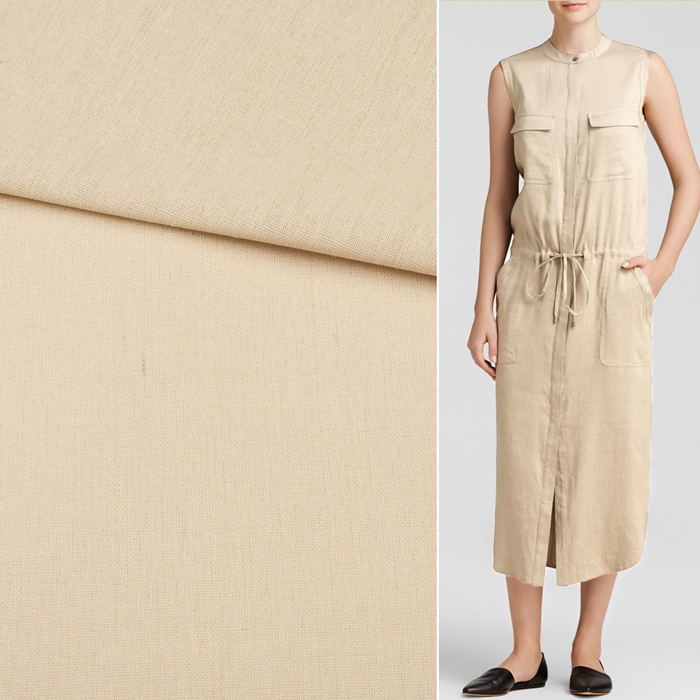 Лен бежевый светлый ш.140. Состав ткани: Лён-70, Хлопок-30. Плотность ткани: 170 г/м.кв. Страна производитель: Южная Корея. Лен - материал средней плотности, натурального происхождения, используется для пошива летних изделий. Гигроскопичный, воздухопроницаемый, прочный, устойчив к носке, стирке и глаженью. Поверхность ткани матовая, а благодаря хлопку в составе, тактильно очень мягкая и приятная на ощупь, непрозрачна. В складках и сборках не имеет значительного формообразования, ложится мягко и пластично. Подходит для пошива брючных костюмов свободного кроя, пиджаков, платьев, юбок, сарафанов, рубашек.
