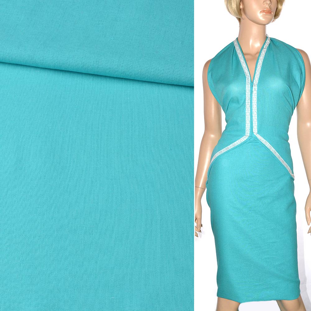 Лен бирюзовый светлый ш.140. Состав ткани: Лён-70, Хлопок-30. Плотность ткани: 162 г/м.кв. Страна производитель: Южная Корея. Лен - материал средней плотности, натурального происхождения, используется для пошива летних изделий. Гигроскопичный, воздухопроницаемый, прочный, устойчив к носке, стирке и глаженью. Поверхность ткани матовая, а благодаря хлопку в составе, тактильно очень мягкая и приятная на ощупь, непрозрачна. В складках и сборках не имеет значительного формообразования, ложится мягко и пластично. Подходит для пошива брючных костюмов свободного кроя, пиджаков, платьев, юбок, сарафанов, рубашек.