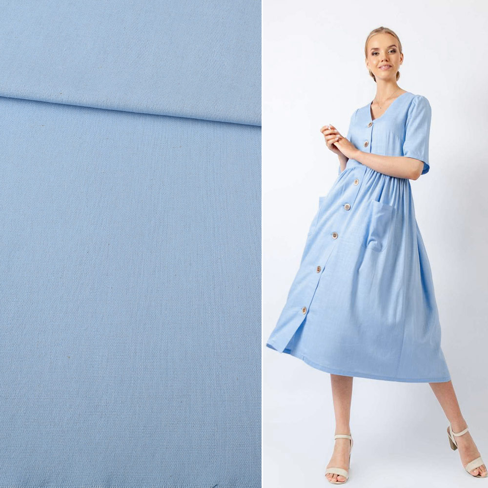 Лен голубой ш.140. Состав ткани: Лён-70, Хлопок-30. Плотность ткани: 170 г/м.кв. Страна производитель: Южная Корея. Лен - материал средней плотности, натурального происхождения, используется для пошива летних изделий. Гигроскопичный, воздухопроницаемый, прочный, устойчив к носке, стирке и глаженью. Поверхность ткани матовая, а благодаря хлопку в составе, тактильно очень мягкая и приятная на ощупь, непрозрачна. В складках и сборках не имеет значительного формообразования, ложится мягко и пластично. Подходит для пошива брючных костюмов свободного кроя, пиджаков, платьев, юбок, сарафанов, рубашек.
