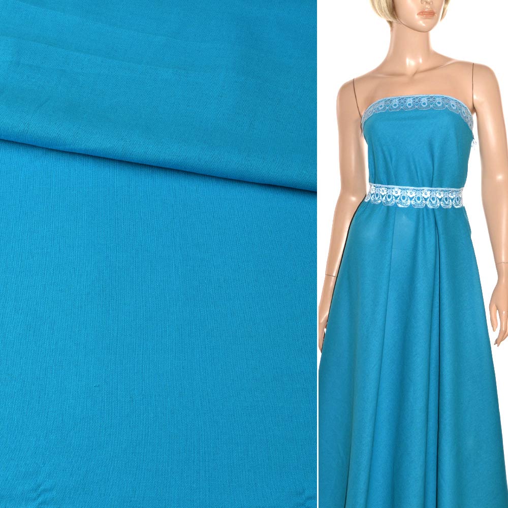 Лен лазурный ш.140. Состав ткани: Лён-70, Хлопок-30. Плотность ткани: 161 г/м.кв. Страна производитель: Южная Корея. Лен - материал средней плотности, натурального происхождения, используется для пошива летних изделий. Гигроскопичный, воздухопроницаемый, прочный, устойчив к носке, стирке и глаженью. Поверхность ткани матовая, а благодаря хлопку в составе, тактильно очень мягкая и приятная на ощупь, непрозрачна. В складках и сборках не имеет значительного формообразования, ложится мягко и пластично. Подходит для пошива брючных костюмов свободного кроя, пиджаков, платьев, юбок, сарафанов, рубашек.