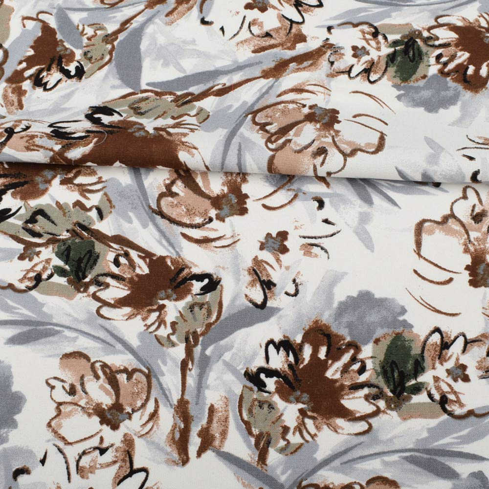 Лен белый, оливково-коричневые, серые цветы, ш.135 купить в розницу и оптом