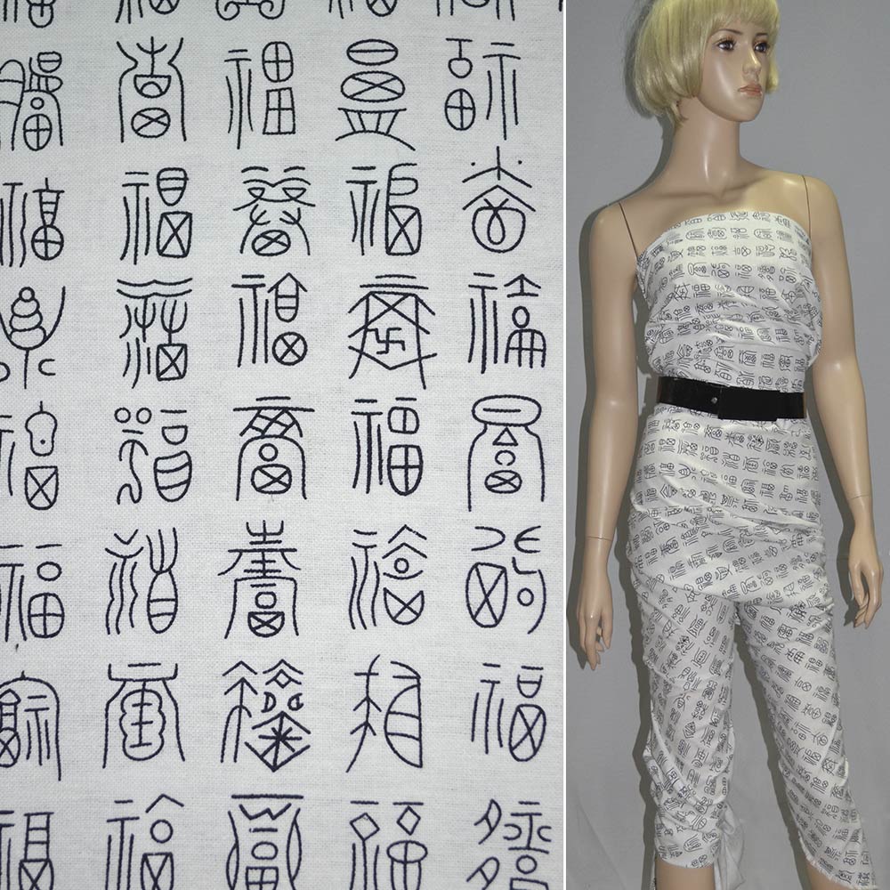 Лен белый с черными иероглифами в полоску ш.145 купить в розницу и оптом