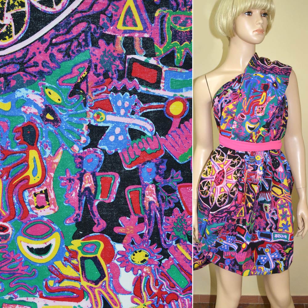 Лен черный с разноцветным геометрическим рисунком ш.145. Состав ткани: Лён-70, Хлопок-30. Плотность ткани: 137 г/м.кв. Страна производитель: Южная Корея. Лен - материал средней плотности, натурального происхождения, используется для пошива летних изделий. Гигроскопичный, воздухопроницаемый, прочный, устойчив к носке, стирке и глаженью. Поверхность ткани матовая, а благодаря хлопку в составе, тактильно очень мягкая и приятная на ощупь, непрозрачна. В складках и сборках не имеет значительного формообразования, ложится мягко и пластично. Подходит для пошива брючных костюмов свободного кроя, пиджаков, платьев, юбок, сарафанов, рубашек.