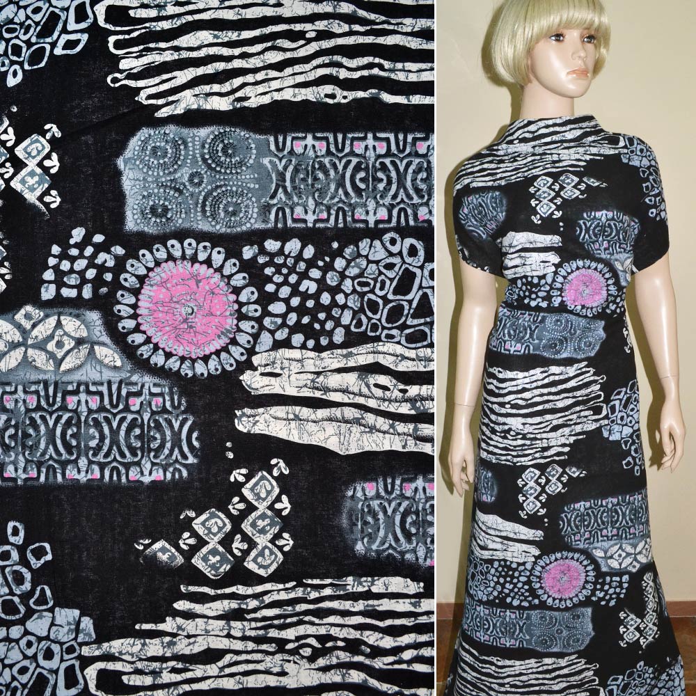 Лен черный с розово-серым абстрактным рисунком ш.147 купить в розницу и оптом