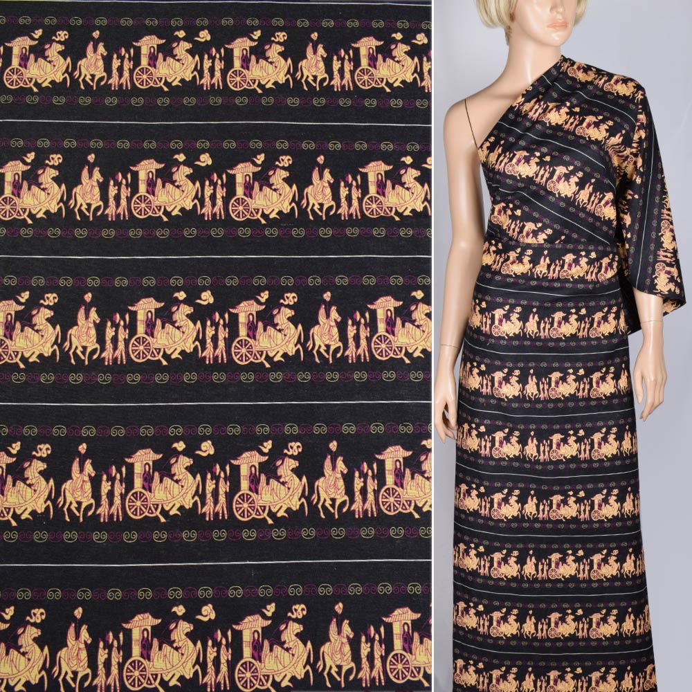 Лен черный с желтым египетским рисунком ш.140 купить в розницу и оптом