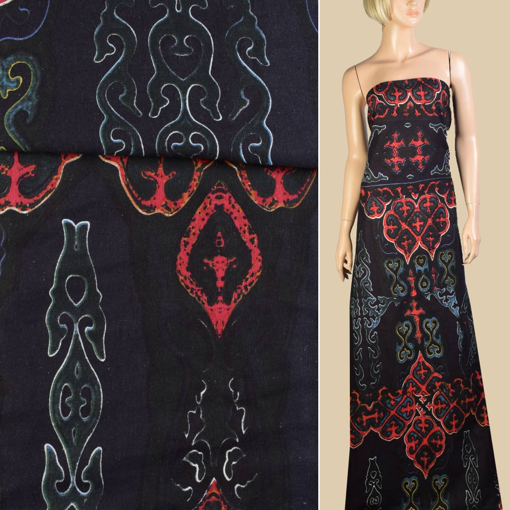 Лен черный в красно-голубой орнамент, ш.145 купить в розницу и оптом