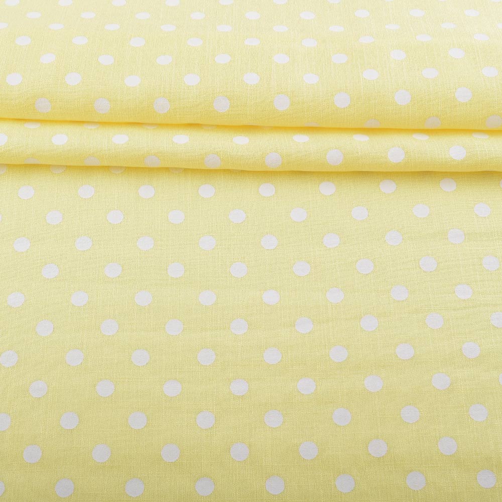 Лен с хлопком желтый светлый в белый горох, ш.155 купить в розницу и оптом