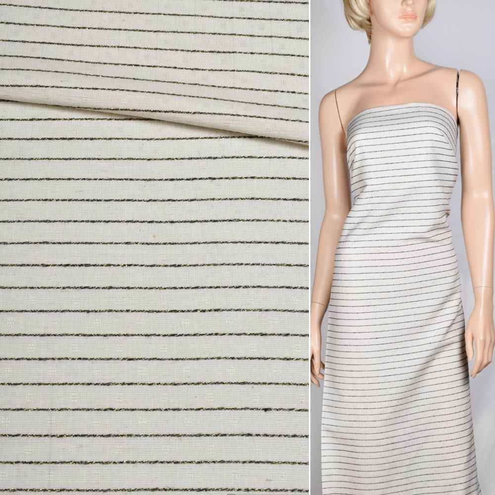 Лен костюмный молочный в черные полоски с люрексом ш.145 купить в розницу и оптом