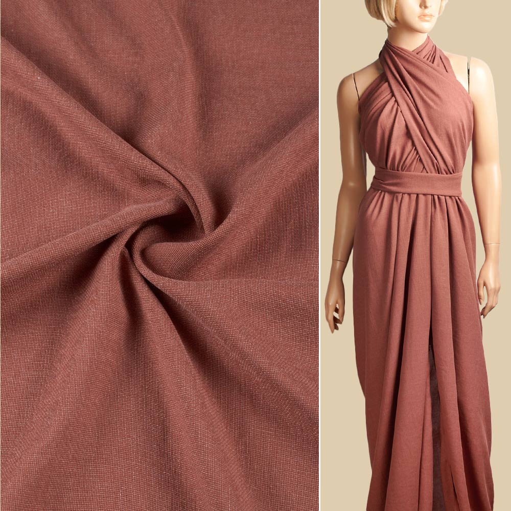 Марлевка красно-коричневая, ш.150. Состав ткани: Хлопок-60, Вискоза-30, Полиэстер-10. Плотность ткани: 143 г/м.кв. Страна производитель: Южная Корея. Марлевая ткань - эта легкая и полупрозрачная ткань имеет мягкую и хрупкую фактуру с рыхлым переплетением, что обеспечивает воздухопроницаемость, создавая комфорт в носке. Поэтому ткань часто используют для летних брюк, топов, платьев и блузок, а также шарфов. Так же изготавливают подклады для различной одежды.