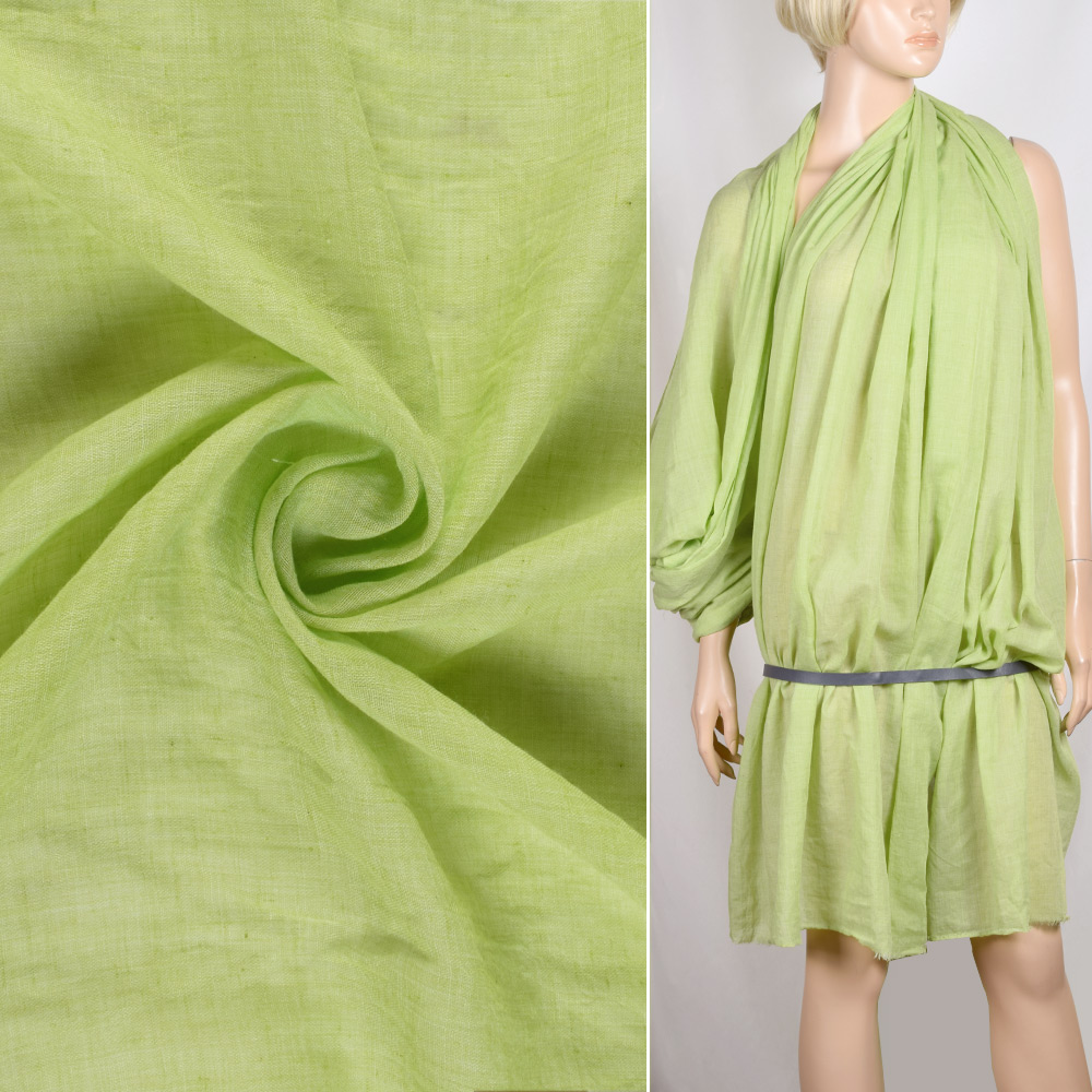 Марлевка салатовая ш.150. Состав ткани: Вискоза-40, Полиэстер-20, Хлопок-40. Плотность ткани: 66 г/м.кв. Страна производитель: Южная Корея. Марлевая ткань - эта легкая и полупрозрачная ткань имеет мягкую и хрупкую фактуру с рыхлым переплетением, что обеспечивает воздухопроницаемость, создавая комфорт в носке. Поэтому ткань часто используют для летних брюк, топов, платьев и блузок, а также шарфов. Так же изготавливают подклады для различной одежды.