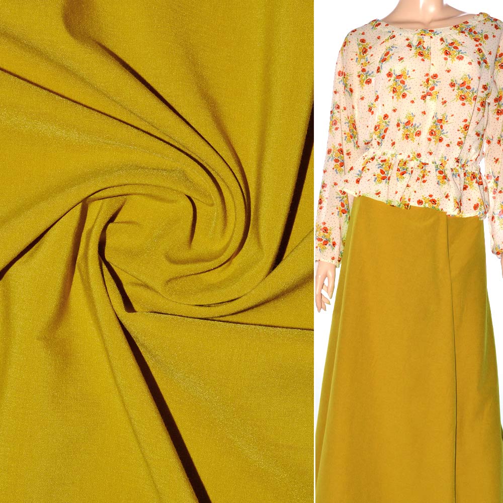 Поплин стрейчевый горчично-желтый ш.150. Состав ткани: Вискоза-80, Полиамид-13, Эластан-7. Плотность ткани: 124 г/м.кв. Страна производитель: Южная Корея. Поплин представляет собой гладкий, воздушный, приятный на ощупь, нежный материал. В жаркое время в одежде из поплина будет комфортно, так как ткань обладает отличной воздухопроницаемостью. Ткань приятно лежит на теле, не раздражает чувствительную кожу. Она хорошо кроится, легко шьется, изделия из неё хорошо сохраняют форму. Благодаря эластану в составе материал хорошо тянется и сразу же возвращается в первоначальный вид. Используется для изготовления летних платьев, блуз, женского и детского белья, мужских сорочек и т. д. Несмотря на легкость и тонкость, вещи из поплина отлично сохраняют форму.