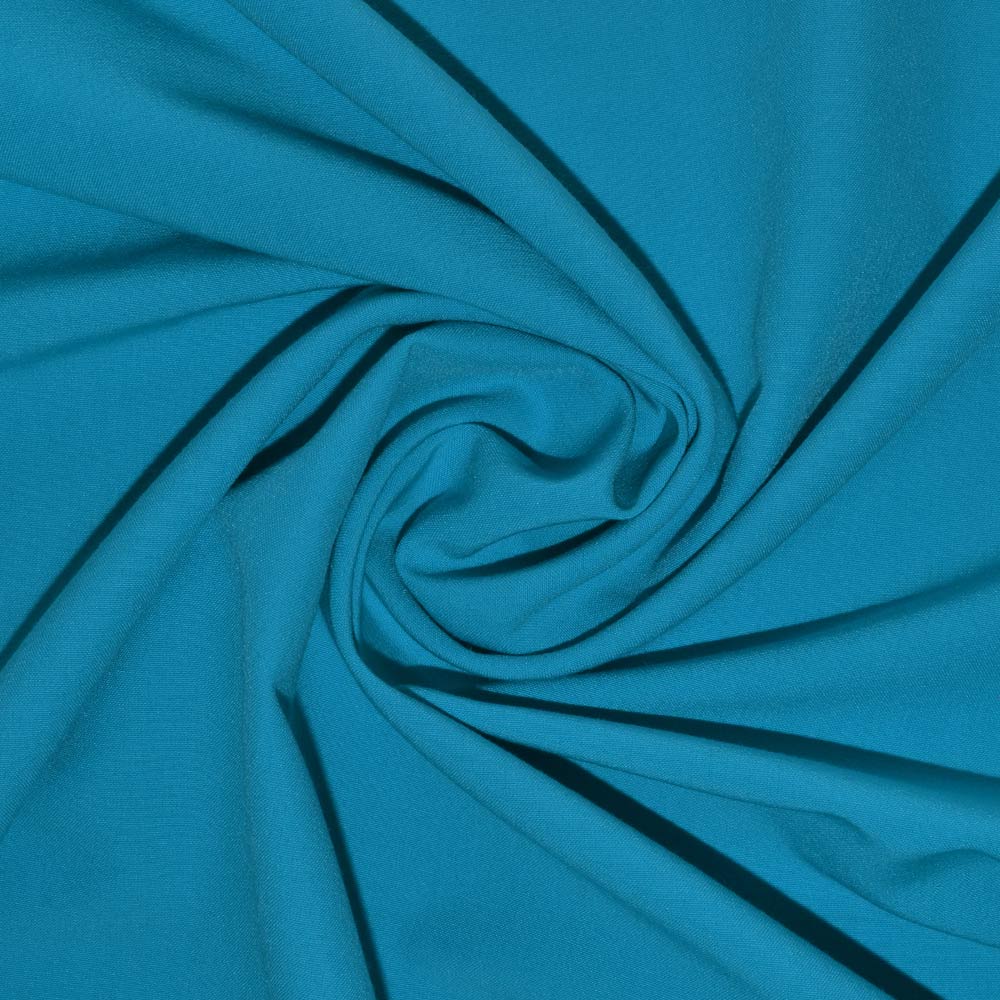 Поплин стрейчевый ярко-бирюзовый ш.150. Состав ткани: Вискоза-80, Полиамид-13, Эластан-7. Плотность ткани: 125 г/м.кв. Страна производитель: Южная Корея. Поплин представляет собой гладкий, воздушный, приятный на ощупь, нежный материал. В жаркое время в одежде из поплина будет комфортно, так как ткань обладает отличной воздухопроницаемостью. Ткань приятно лежит на теле, не раздражает чувствительную кожу. Она хорошо кроится, легко шьется, изделия из неё хорошо сохраняют форму. Благодаря эластану в составе материал хорошо тянется и сразу же возвращается в первоначальный вид. Используется для изготовления летних платьев, блуз, женского и детского белья, мужских сорочек и т. д. Несмотря на легкость и тонкость, вещи из поплина отлично сохраняют форму.