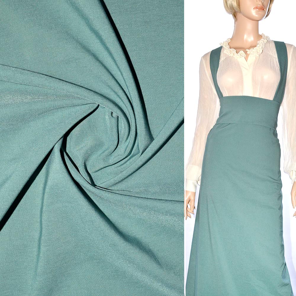 Поплин стрейчевый зелено-серый ш.150. Состав ткани: Вискоза-80, Полиамид-13, Эластан-7. Плотность ткани: 124 г/м.кв. Страна производитель: Южная Корея. Поплин представляет собой гладкий, воздушный, приятный на ощупь, нежный материал. В жаркое время в одежде из поплина будет комфортно, так как ткань обладает отличной воздухопроницаемостью. Ткань приятно лежит на теле, не раздражает чувствительную кожу. Она хорошо кроится, легко шьется, изделия из неё хорошо сохраняют форму. Благодаря эластану в составе материал хорошо тянется и сразу же возвращается в первоначальный вид. Используется для изготовления летних платьев, блуз, женского и детского белья, мужских сорочек и т. д. Несмотря на легкость и тонкость, вещи из поплина отлично сохраняют форму.