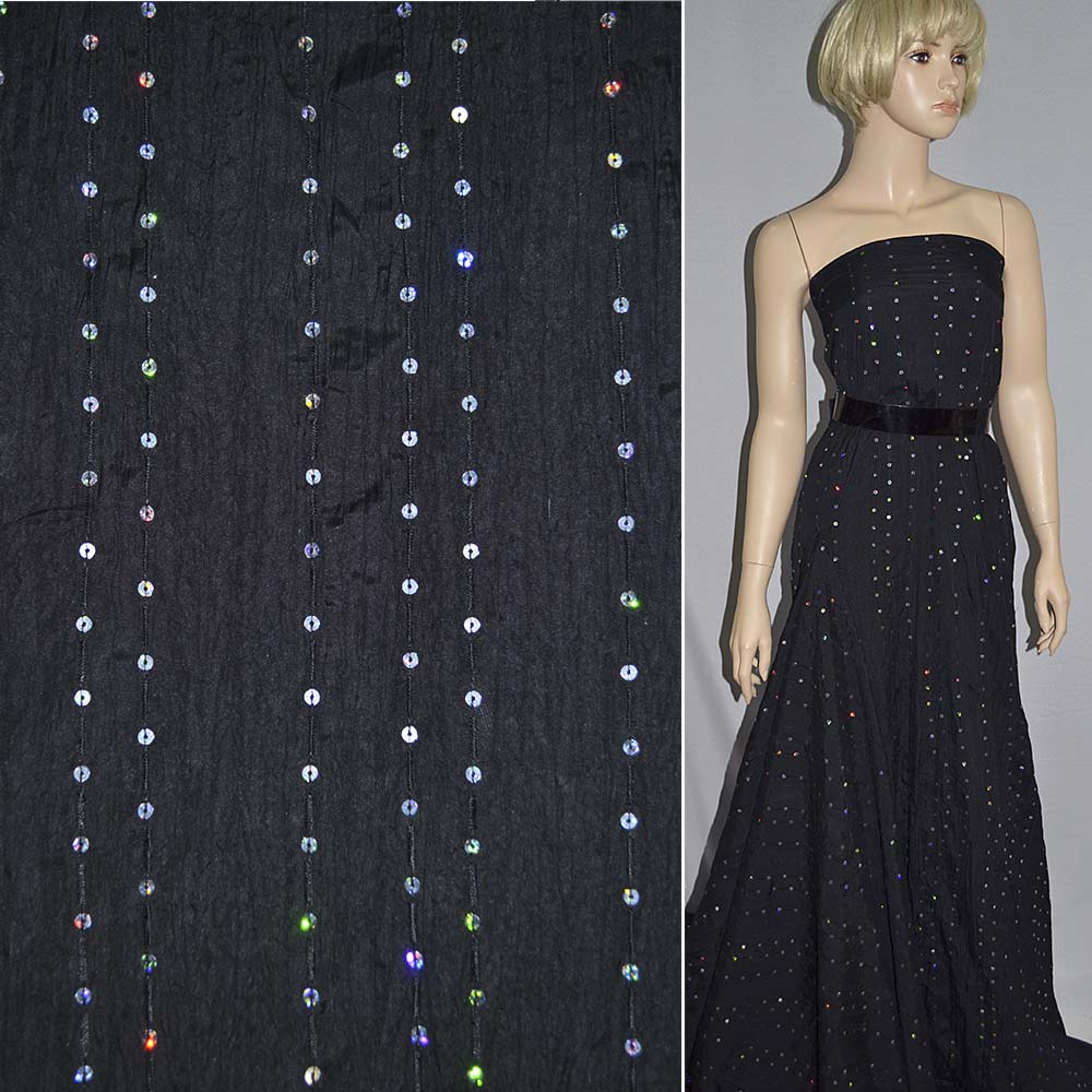 Поплин жатый черный с паетками ш.130 купить в розницу и оптом