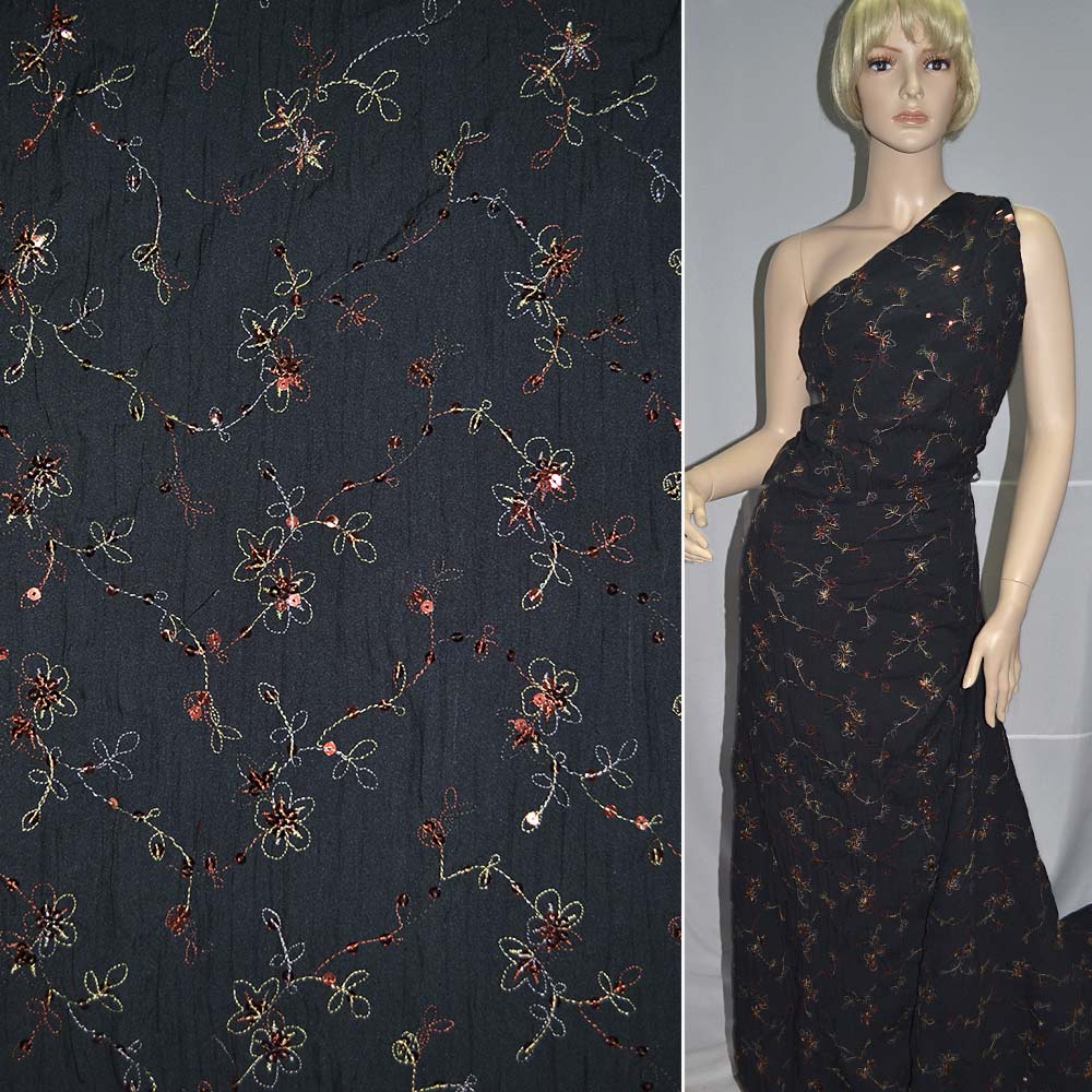 Поплин жатый черный вышитый паетками ш.140 купить в розницу и оптом
