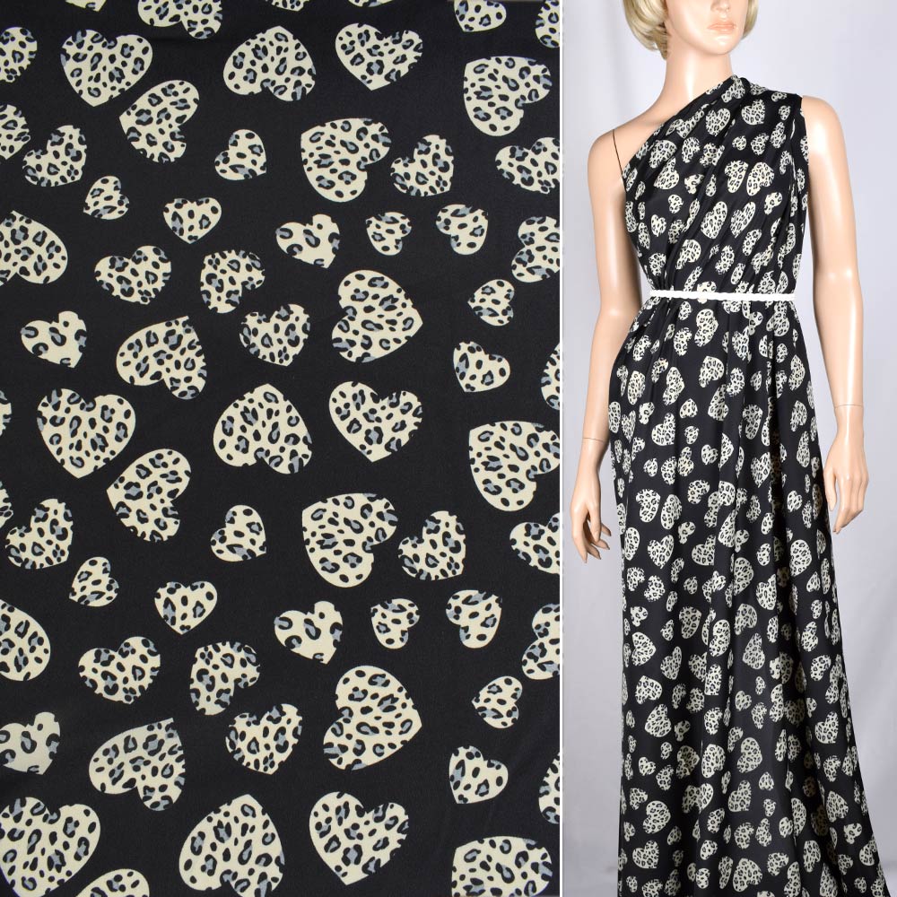 Креп поплин черный с бежевыми сердцами ш.150 купить в розницу и оптом