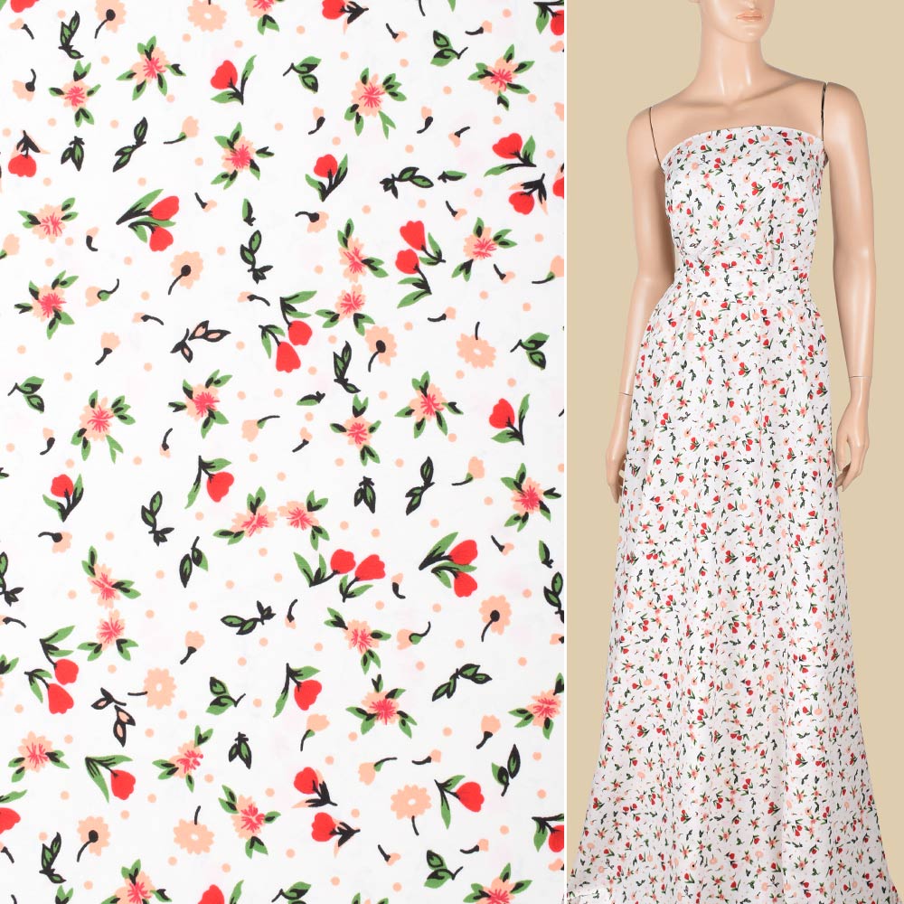 Поплин белый, красные, персиковые цветочки, ш.152 купить в розницу и оптом