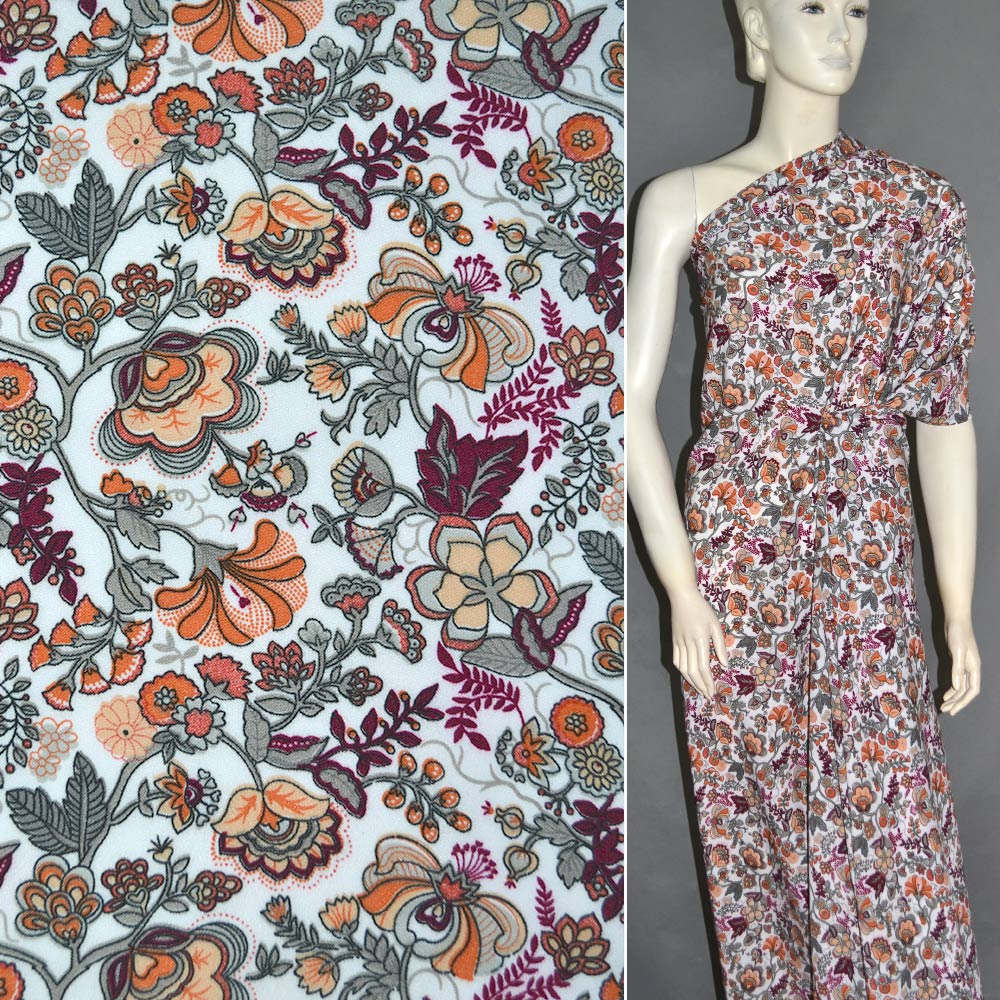 Поплин белый в бордово-оранжевые цветы ш.145 купить в розницу и оптом