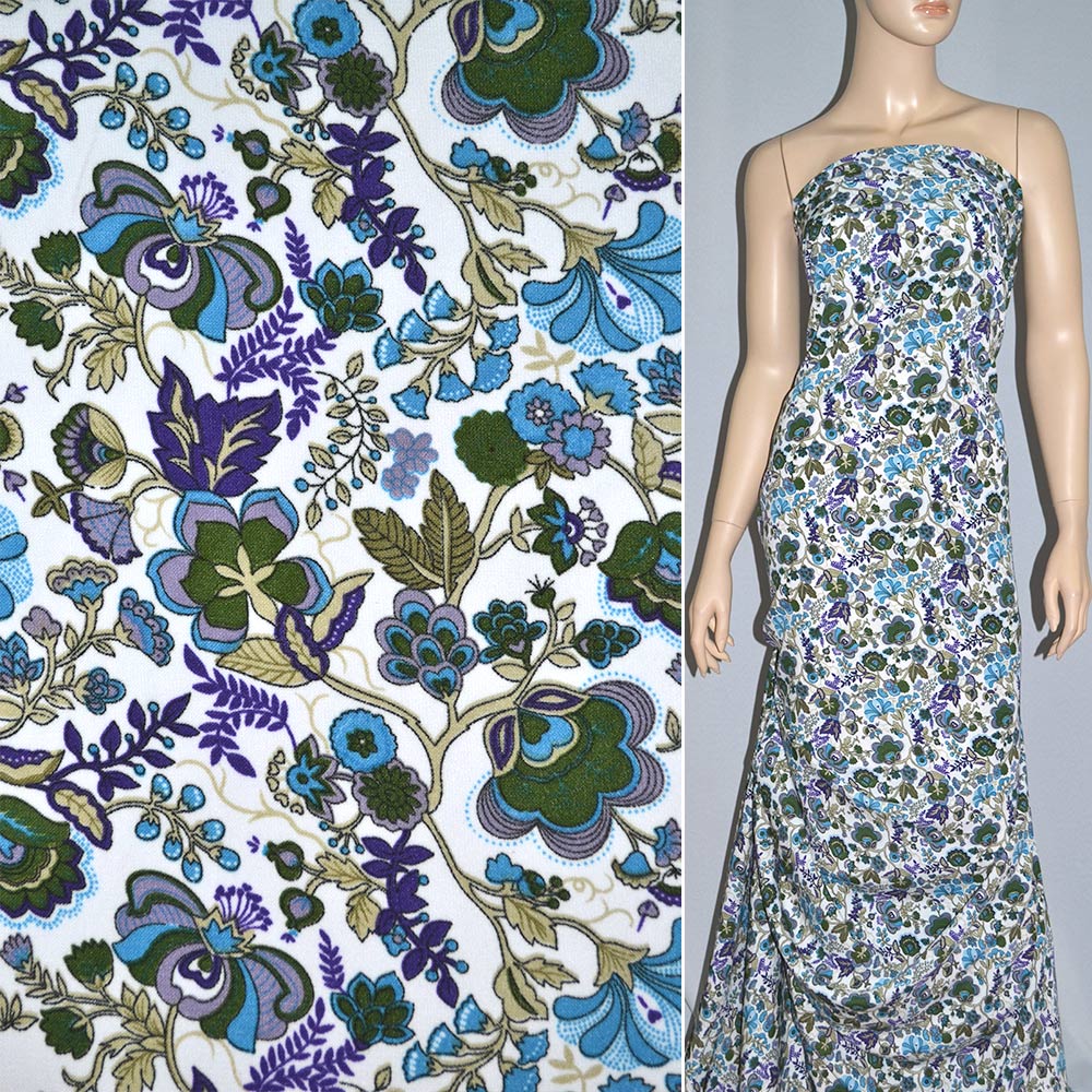 Поплин белый в фиолетово-голубые цветы ш.145. Состав ткани: Вискоза-20, Полиакрил-20, Полиэстер-60. Плотность ткани: 121 г/м.кв. Страна производитель: Южная Корея. Поплин представляет собой гладкий, воздушный, приятный на ощупь, нежный материал. В жаркое время в одежде из поплина будет комфортно, так как ткань обладает отличной воздухопроницаемостью. Ткань приятно лежит на теле, не раздражает чувствительную кожу. Она хорошо кроится, легко шьется, изделия из неё хорошо сохраняют форму. Используется для изготовления летних платьев, блуз, женского и детского белья, мужских сорочек и т. д. Несмотря на легкость и тонкость, вещи из поплина отлично сохраняют форму.