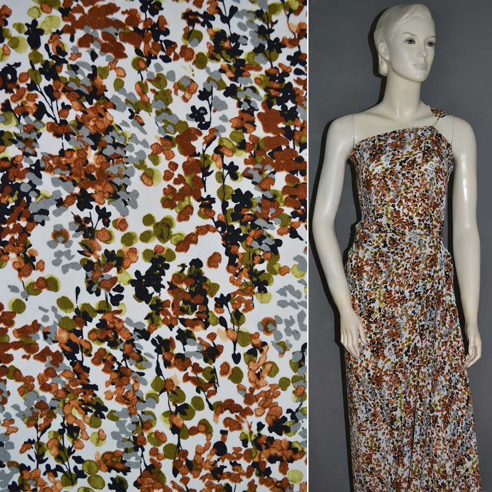 Поплин диллон белый с веточками коричнево-серых цветов ш.150. Состав ткани: Вискоза-60, Полиамид-40. Плотность ткани: 101 г/м.кв. Страна производитель: Южная Корея. Поплин представляет собой гладкий, воздушный, приятный на ощупь, нежный материал. В жаркое время в одежде из поплина будет комфортно, так как ткань обладает отличной воздухопроницаемостью. Ткань приятно лежит на теле, не раздражает чувствительную кожу. Она хорошо кроится, легко шьется, изделия из неё хорошо сохраняют форму. Используется для изготовления летних платьев, блуз, женского и детского белья, мужских сорочек и т. д. Несмотря на легкость и тонкость, вещи из поплина отлично сохраняют форму.