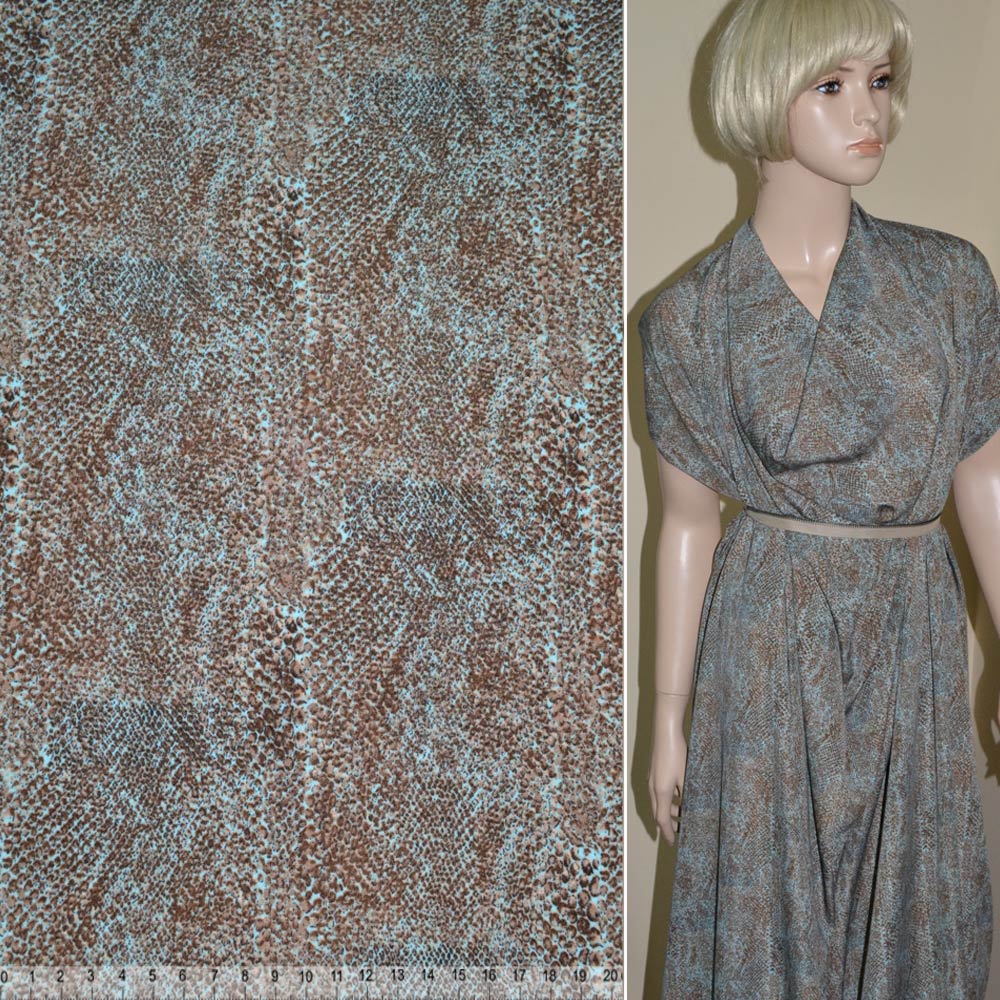 Поплин диллон коричнево-голубой принт рептилия ш.150 купить в розницу и оптом