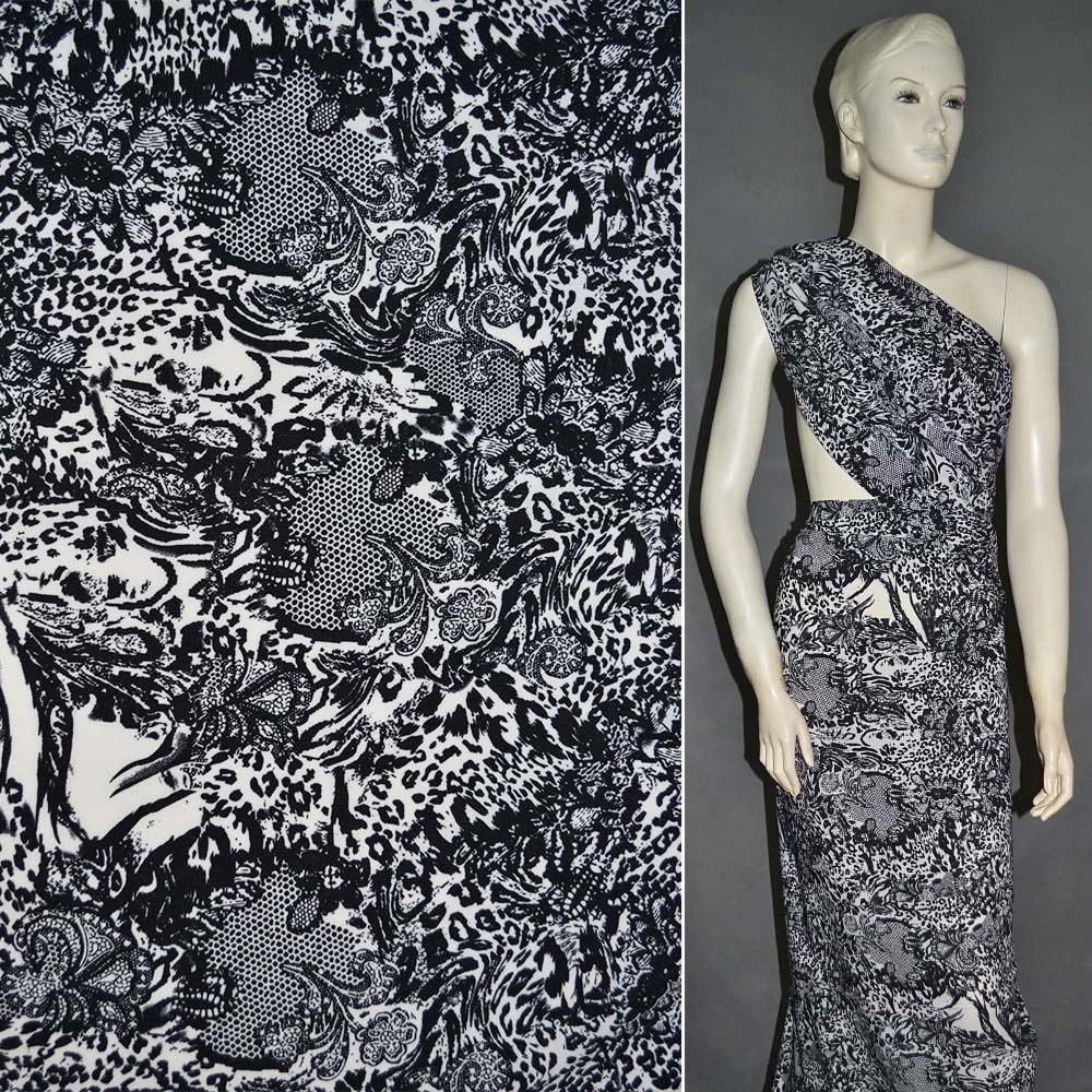 Поплин диллон молочно-черный с абстрактным рисунком ш.150. Состав ткани: Вискоза-60, Полиамид-40. Плотность ткани: 101 г/м.кв. Страна производитель: Южная Корея. Поплин представляет собой гладкий, воздушный, приятный на ощупь, нежный материал. В жаркое время в одежде из поплина будет комфортно, так как ткань обладает отличной воздухопроницаемостью. Ткань приятно лежит на теле, не раздражает чувствительную кожу. Она хорошо кроится, легко шьется, изделия из неё хорошо сохраняют форму. Используется для изготовления летних платьев, блуз, женского и детского белья, мужских сорочек и т. д. Несмотря на легкость и тонкость, вещи из поплина отлично сохраняют форму.