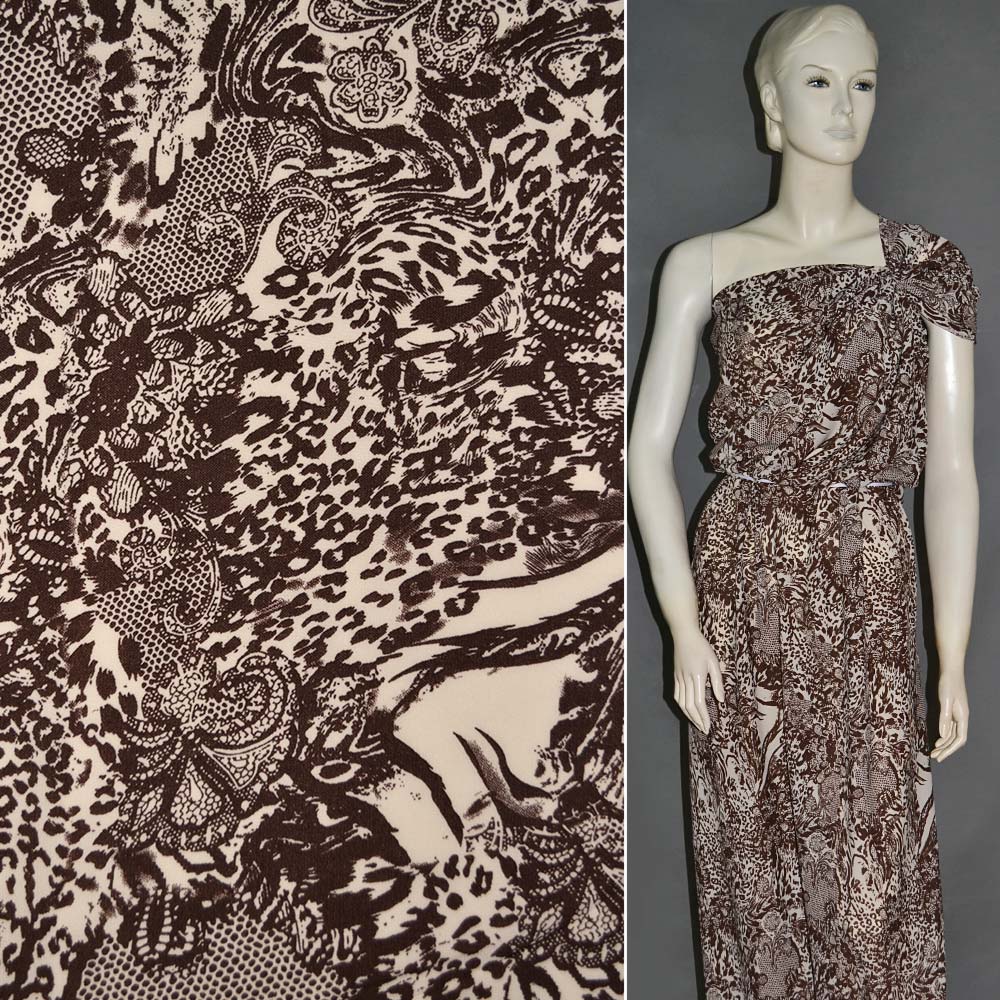 Поплин диллон молочно-коричневый с абстрактным рисунком ш.150. Состав ткани: Вискоза-60, Полиамид-40. Плотность ткани: 101 г/м.кв. Страна производитель: Южная Корея. Поплин представляет собой гладкий, воздушный, приятный на ощупь, нежный материал. В жаркое время в одежде из поплина будет комфортно, так как ткань обладает отличной воздухопроницаемостью. Ткань приятно лежит на теле, не раздражает чувствительную кожу. Она хорошо кроится, легко шьется, изделия из неё хорошо сохраняют форму. Используется для изготовления летних платьев, блуз, женского и детского белья, мужских сорочек и т. д. Несмотря на легкость и тонкость, вещи из поплина отлично сохраняют форму.