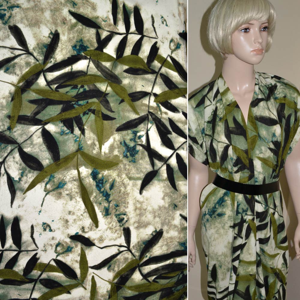 Поплин диллон молочно-зеленый с черными листьями ш.148. Состав ткани: Вискоза-60, Полиамид-40. Плотность ткани: 118 г/м.кв. Страна производитель: Южная Корея. Поплин представляет собой гладкий, воздушный, приятный на ощупь, нежный материал. В жаркое время в одежде из поплина будет комфортно, так как ткань обладает отличной воздухопроницаемостью. Ткань приятно лежит на теле, не раздражает чувствительную кожу. Она хорошо кроится, легко шьется, изделия из неё хорошо сохраняют форму. Используется для изготовления летних платьев, блуз, женского и детского белья, мужских сорочек и т. д. Несмотря на легкость и тонкость, вещи из поплина отлично сохраняют форму.