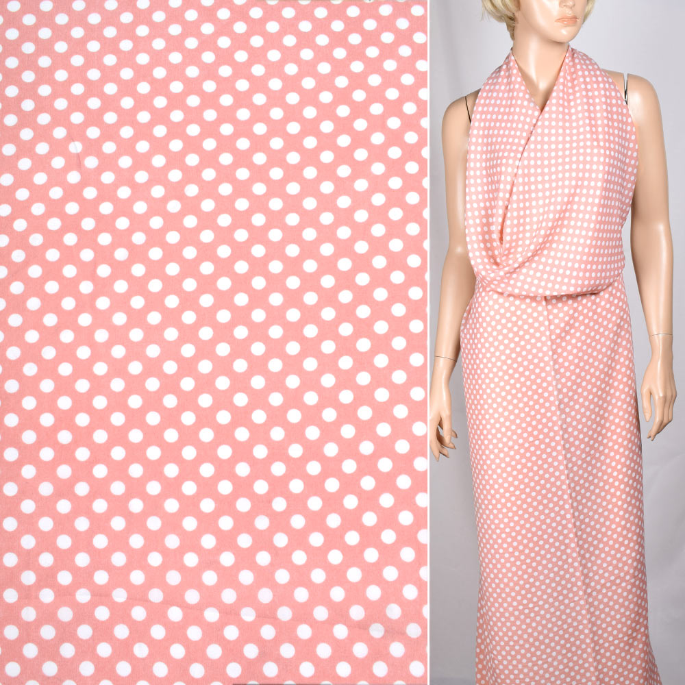 Поплин диллон персиковый в белый горох ш.150 купить в розницу и оптом