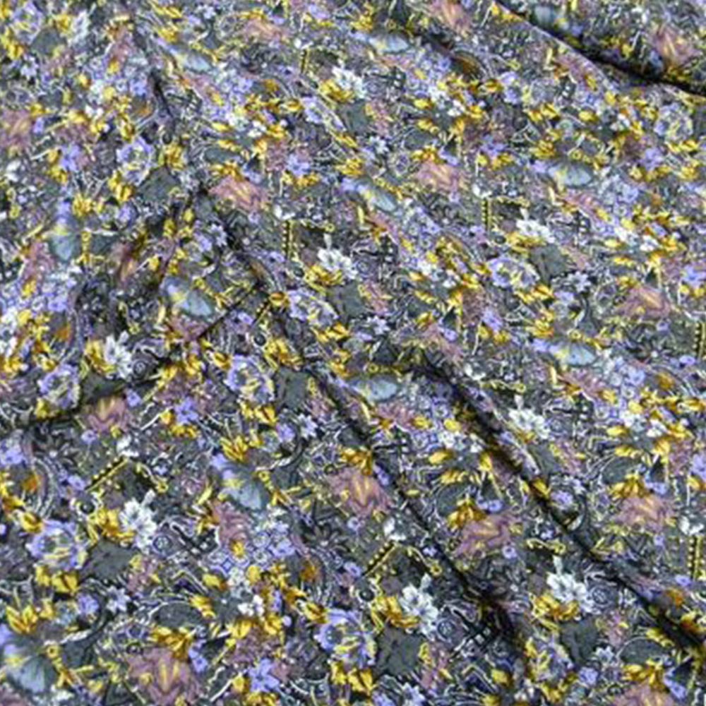 Поплин диллон серый в фиолетово-желтые цветы и абстрактный рисунок. ш.150. Состав ткани: Вискоза-60, Полиамид-40. Плотность ткани: 101 г/м.кв. Страна производитель: Южная Корея. Поплин представляет собой гладкий, воздушный, приятный на ощупь, нежный материал. В жаркое время в одежде из поплина будет комфортно, так как ткань обладает отличной воздухопроницаемостью. Ткань приятно лежит на теле, не раздражает чувствительную кожу. Она хорошо кроится, легко шьется, изделия из неё хорошо сохраняют форму. Используется для изготовления летних платьев, блуз, женского и детского белья, мужских сорочек и т. д. Несмотря на легкость и тонкость, вещи из поплина отлично сохраняют форму.