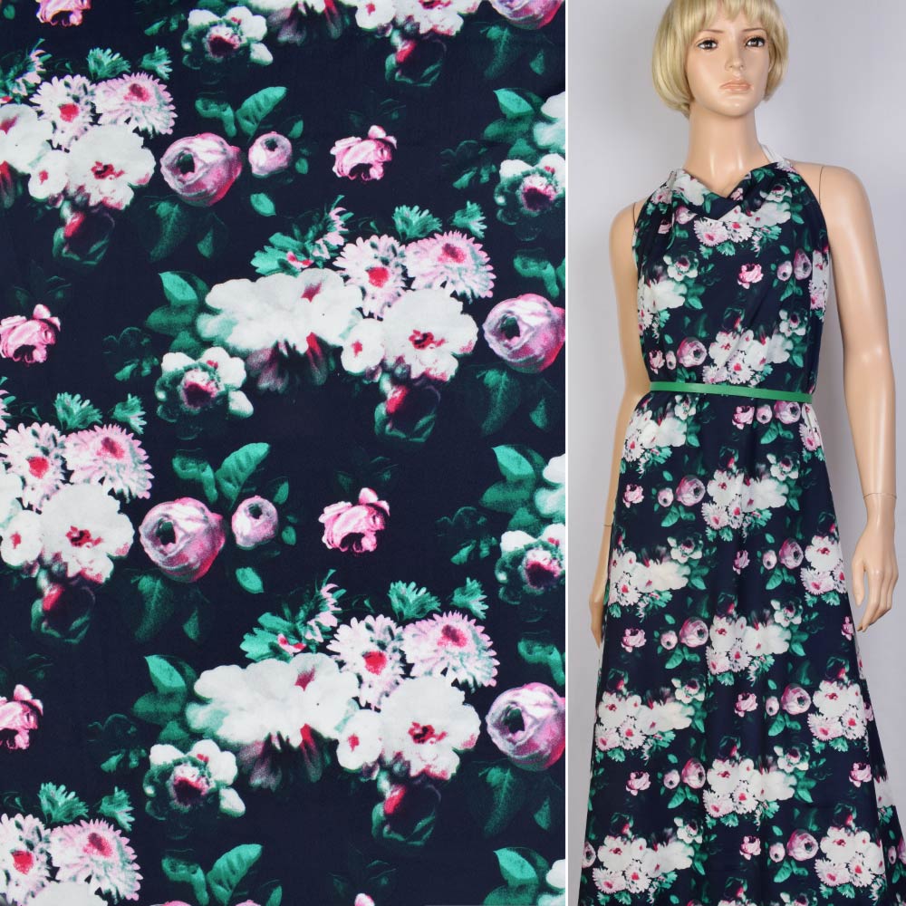 Поплин диллон синий в розово-белые розы ш.150 купить в розницу и оптом