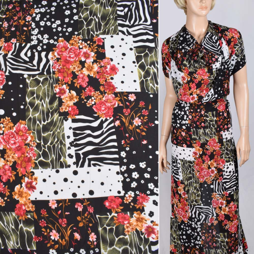 Поплин диллон в черно-белые прямоугольники с цветами ш.150. Состав ткани: Вискоза-60, Полиамид-40. Плотность ткани: 95 г/м.кв. Страна производитель: Южная Корея. Поплин представляет собой гладкий, воздушный, приятный на ощупь, нежный материал. В жаркое время в одежде из поплина будет комфортно, так как ткань обладает отличной воздухопроницаемостью. Ткань приятно лежит на теле, не раздражает чувствительную кожу. Она хорошо кроится, легко шьется, изделия из неё хорошо сохраняют форму. Используется для изготовления летних платьев, блуз, женского и детского белья, мужских сорочек и т. д. Несмотря на легкость и тонкость, вещи из поплина отлично сохраняют форму.