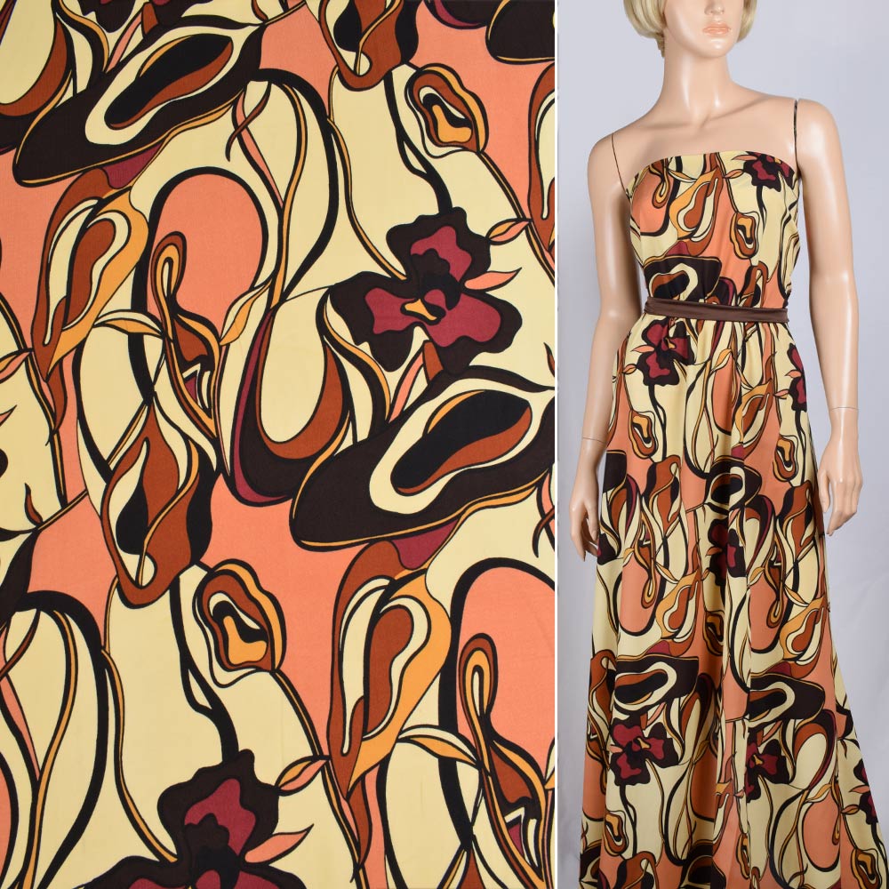 Поплин диллон желтый с коричнево-бордовым абстрактным рисунком ш.150 купить в розницу и оптом