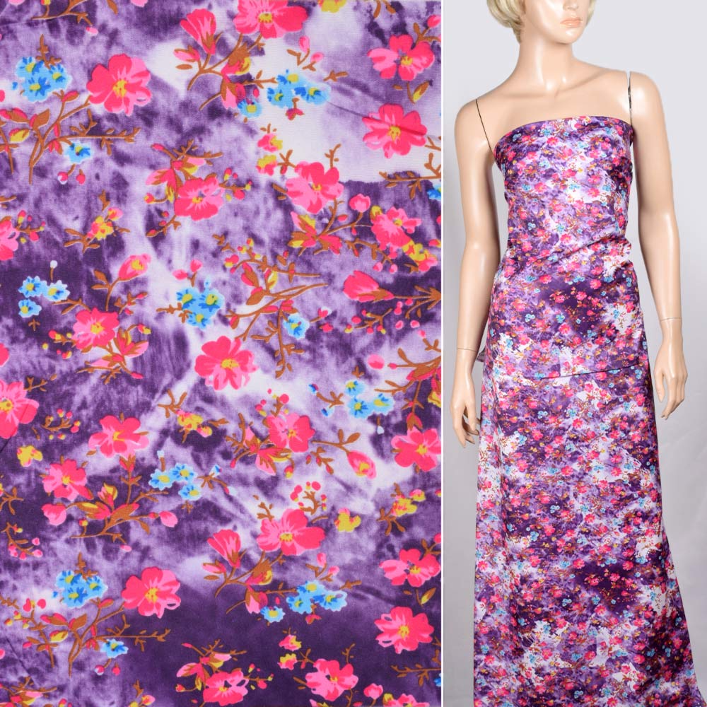 Поплин фиолетово-белый с малиновыми цветами ш.150 купить в розницу и оптом