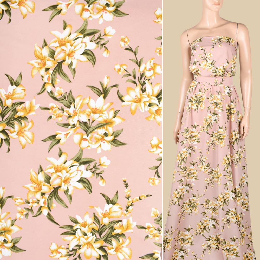 Поплин фрезовый, бежево-белые лилии, ш.150 купить в розницу и оптом
