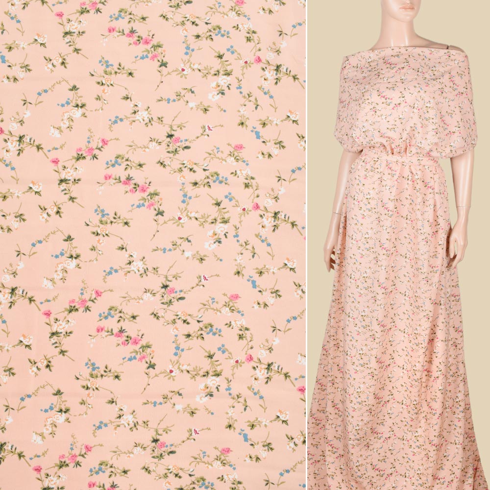 Поплин персиковый, мелкие розочки, ш.151 купить в розницу и оптом