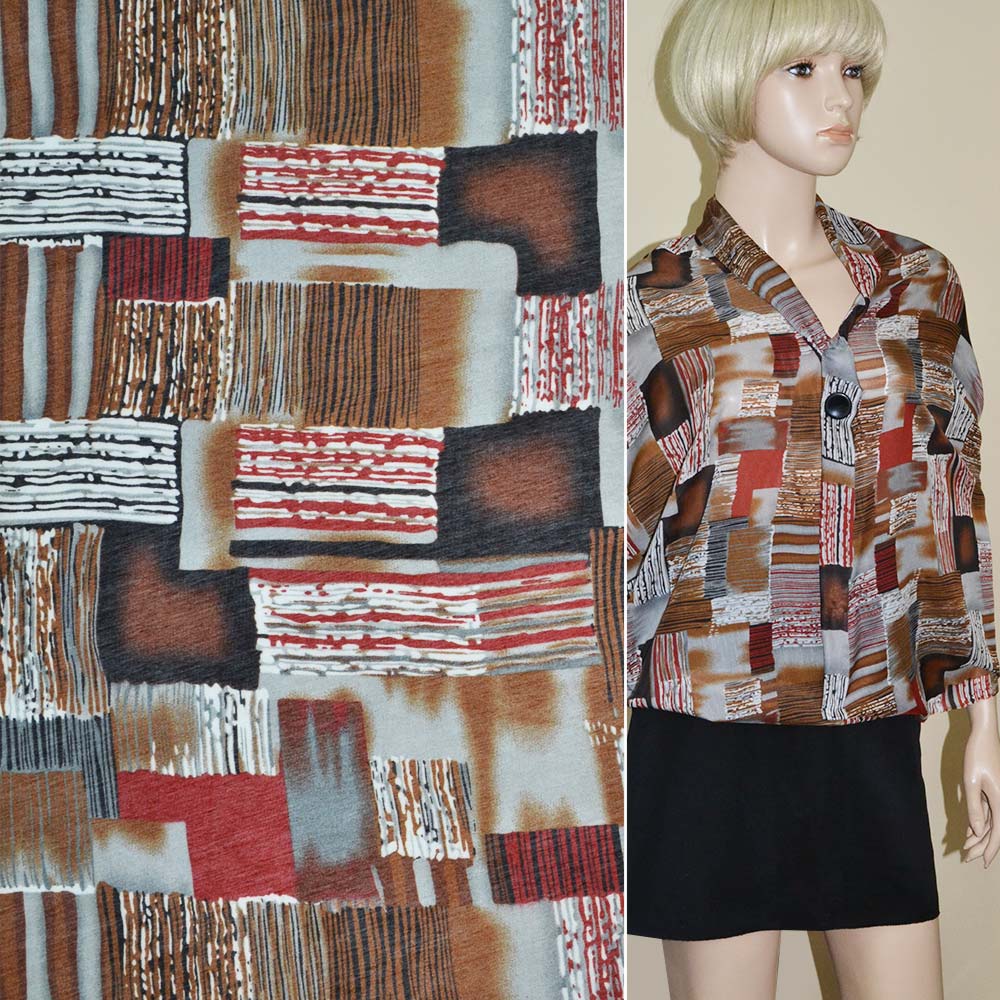 Поплин серый светлый с коричнево-бордовыми прямоугольниками в полоску ш.150. Состав ткани: Вискоза-60, Полиамид-40. Плотность ткани: 56 г/м.кв. Страна производитель: Южная Корея. Поплин представляет собой гладкий, воздушный, приятный на ощупь, нежный материал. В жаркое время в одежде из поплина будет комфортно, так как ткань обладает отличной воздухопроницаемостью. Ткань приятно лежит на теле, не раздражает чувствительную кожу. Она хорошо кроится, легко шьется, изделия из неё хорошо сохраняют форму. Используется для изготовления летних платьев, блуз, женского и детского белья, мужских сорочек и т. д. Несмотря на легкость и тонкость, вещи из поплина отлично сохраняют форму.