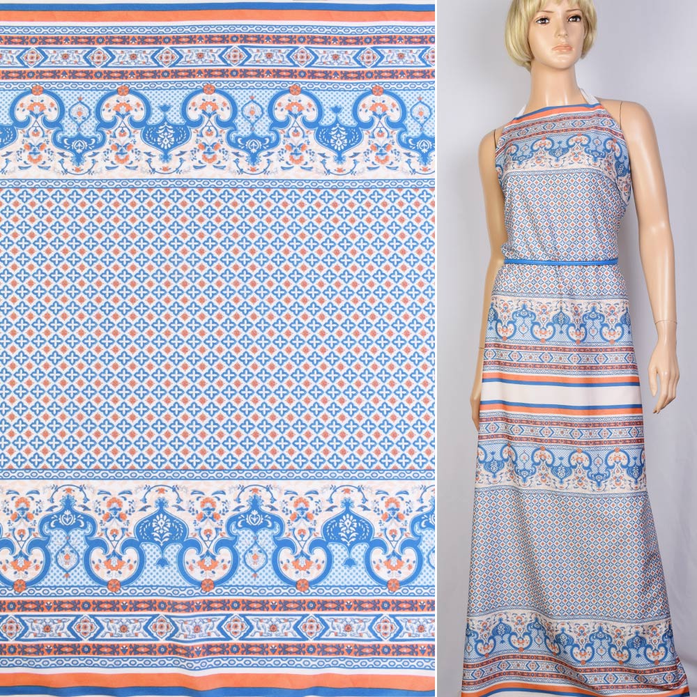 Поплин в оранжево-голубой купон ш.147 купить в розницу и оптом