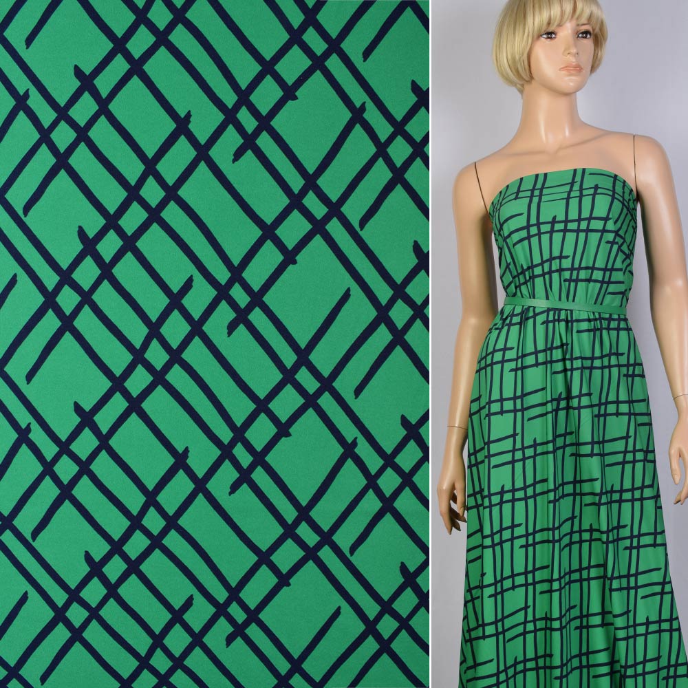 Поплин зеленый (изумрудный) в синие линии ш.150 купить в розницу и оптом