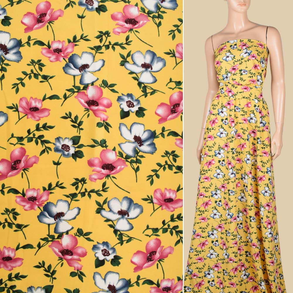 Поплин желтый, розовые, серые маки, ш.150. Состав ткани: Полиэстер-100. Плотность ткани: 85 г/м.кв. Страна производитель: Южная Корея. Поплин представляет собой гладкий, воздушный, приятный на ощупь, нежный материал. В жаркое время в одежде из поплина будет комфортно, так как ткань обладает отличной воздухопроницаемостью. Ткань приятно лежит на теле, не раздражает чувствительную кожу. Она хорошо кроится, легко шьется, изделия из неё хорошо сохраняют форму. Используется для изготовления летних платьев, блуз, женского и детского белья, мужских сорочек и т. д. Несмотря на легкость и тонкость, вещи из поплина отлично сохраняют форму.