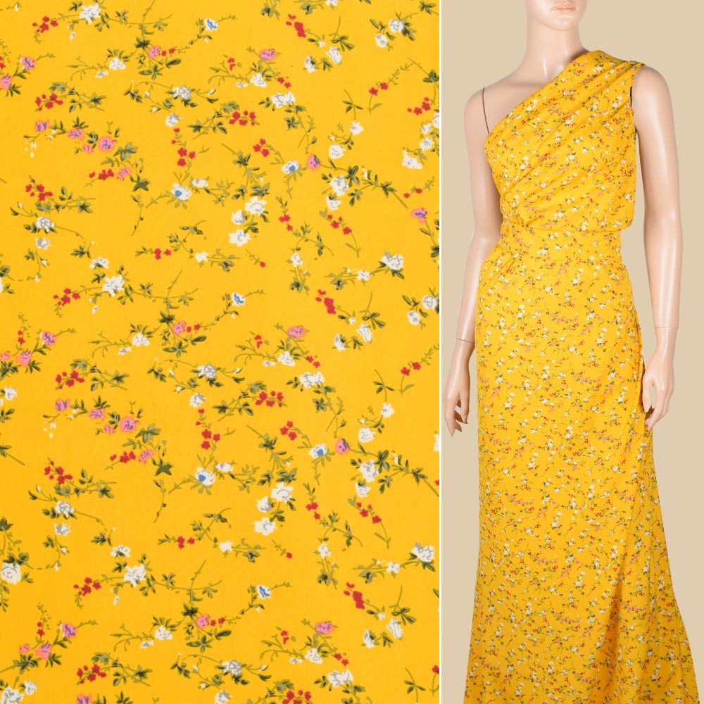Поплин желтый яркий, мелкие розочки, ш.150 купить в розницу и оптом