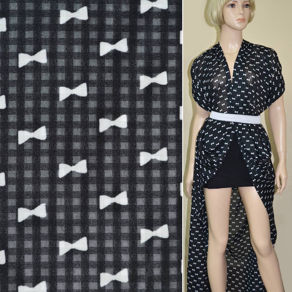 Поплин структурный черный с белыми бантиками ш.150 купить в розницу и оптом